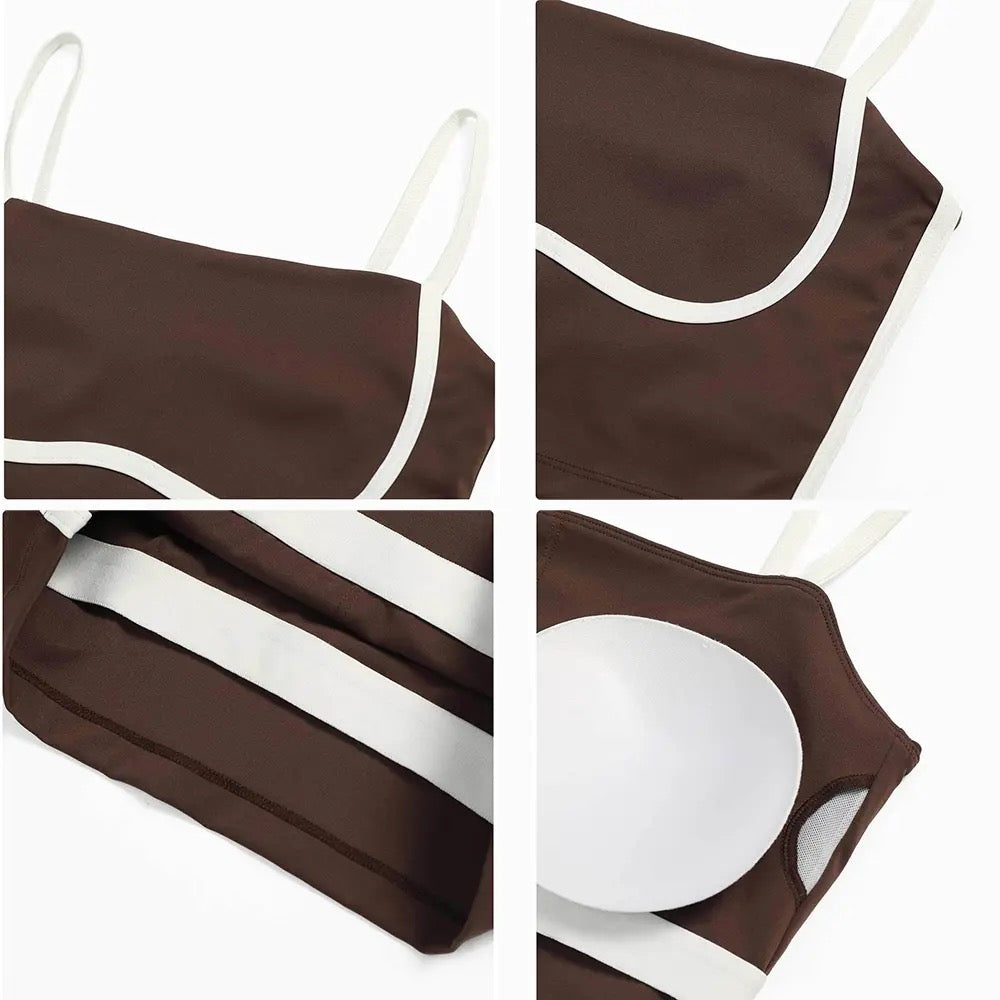 Color block cartoon boarder sport bra with adjustable straps build in layer skirt set