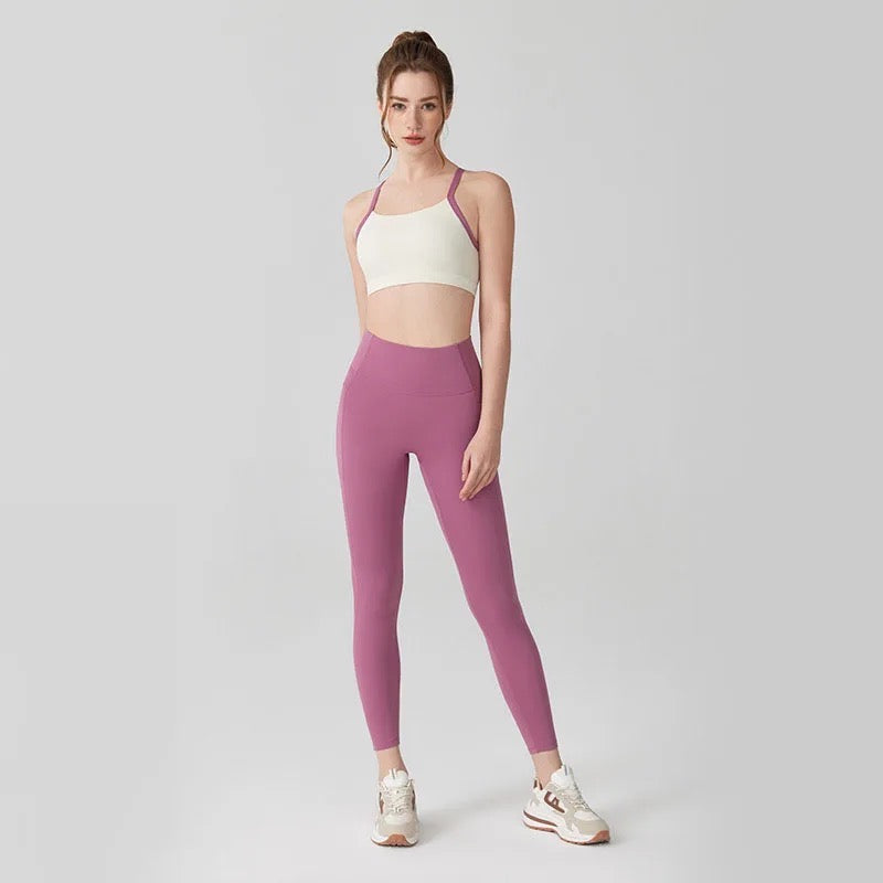 This backless cropped top sport bra and build in pocket legging set is made from smooth fabric, providing a comfortable and supportive fit. The backless design allows for enhanced breathability, while the built-in pocket adds convenience for storing essentials. The color blocking match adds a fashionable touch to this versatile yoga set.