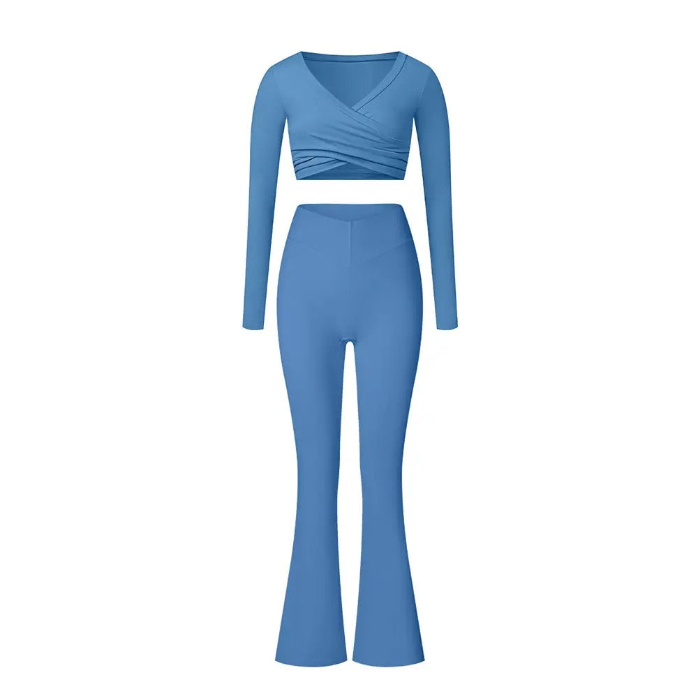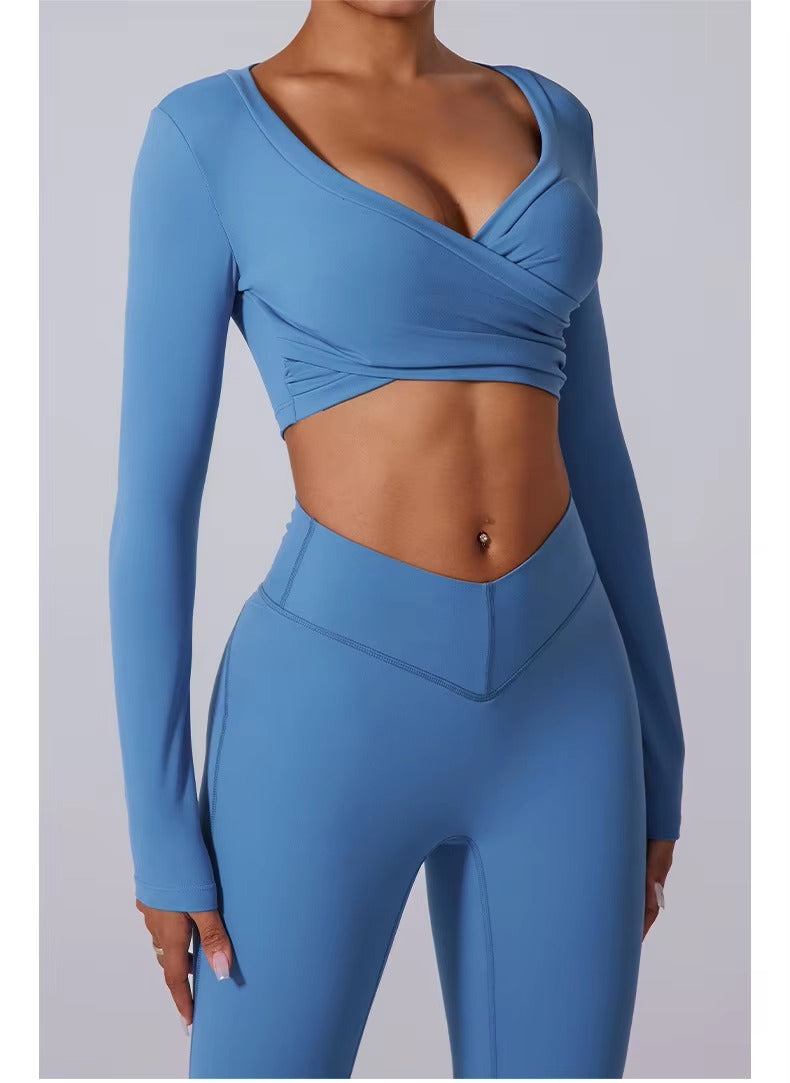 This Fall V shape yoga set features a deep v neck and waisted design for a comfortable and flattering fit. Made with lightweight and breathable materials, it offers sustainable active strength for your yoga practice. Stay cool and supported while looking stylish in this must-have set.